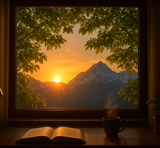 मैं अपने बैडरूम की खिड़की से नीला आकाश, दूर तक फैले पहाड़, नीचे वादी में बहती नदी और दूर एक