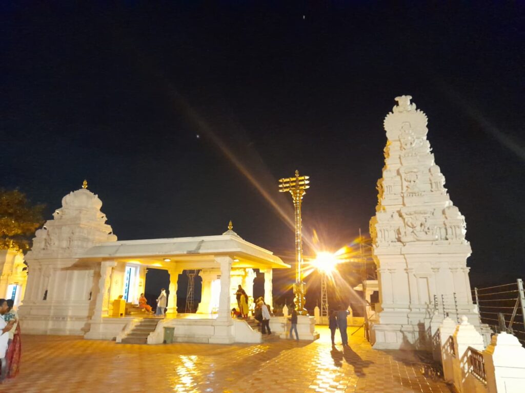 Sanghi temple in the series of temple visits in Telangana is perched on a Paramananda Giri hilltop, some 19 km away from our home in Manneguda, Hyderabad. It took us 20 minutes to reach the place. The route turned out to be detached from the city line. After 15 minutes, Mahi asked me why I did not choose to visit a temple which is located in the main stream of the city. Wondering the dark roads with the heavy bushes on both sides, I softly asked him whether we should take a U-turn!